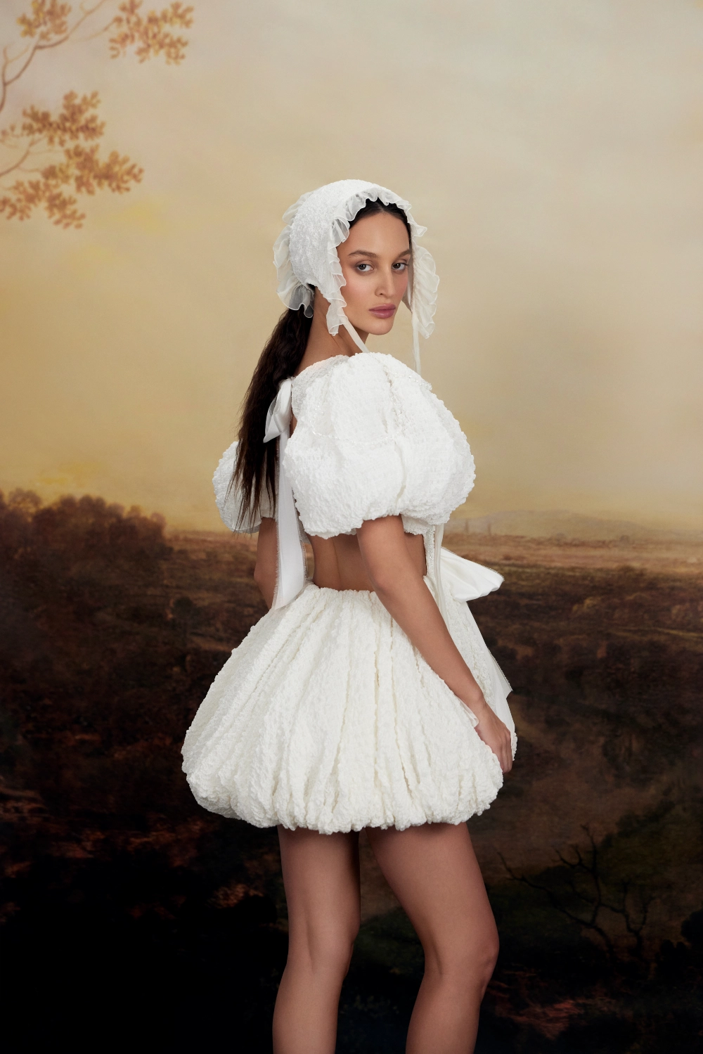 Свадебное платье Aveline mini мини. Спинка: открытая спиная. Из шёлка. Образ дополняют: декоративный бант. Доступные оттенки: кремовый. Aveline mini — свадебное платье от Rara Couture, коллекция Imperial Opulence. Купить, взять напрокат или записаться на примерку — салон MonPari, Гродно.