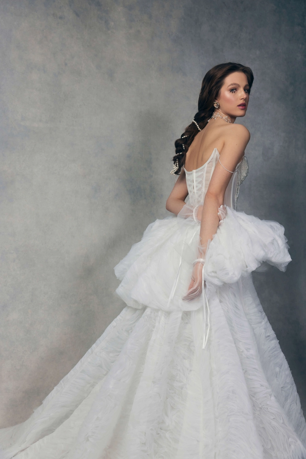 Свадебное платье BELIER силуэта «принцесса». Лиф дополнен: корсетная посадка. Из кружева. Особенности: шлейф. Доступные оттенки: молочный. BELIER — свадебное платье от Rara Couture, коллекция L'horoscope. Купить, взять напрокат или записаться на примерку — салон MonPari, Гродно.
