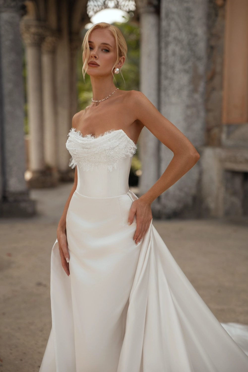 Свадебное платье CODA силуэта «русалка». Лиф дополнен: корсетная посадка. Спинка: шнуровкой на спине. Из атласа. Особенности: шлейф, разрез. Модель с съёмными рукавами. Доступные оттенки: молочный. Свадебный салон MonPari в Гродно приглашает на примерку платья CODA из коллекции Melody of Love (Rara Avis). Покупка и прокат.