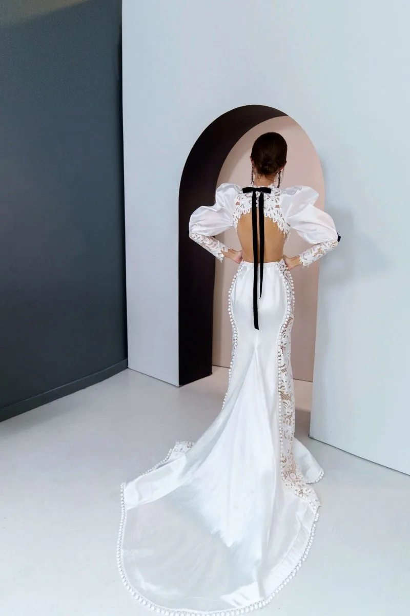 Свадебное платье INES силуэта «русалка». Лиф дополнен: формованные чашки, корсетная посадка. Из микадо. Особенности: шлейф. Модель с длинными рукавами. Доступные оттенки: молочный. Ищете идеальное свадебное платье в Гродно? INES из коллекции Amore Mio (Rara Avis) ждёт вас в салоне MonPari. Покупка и прокат.