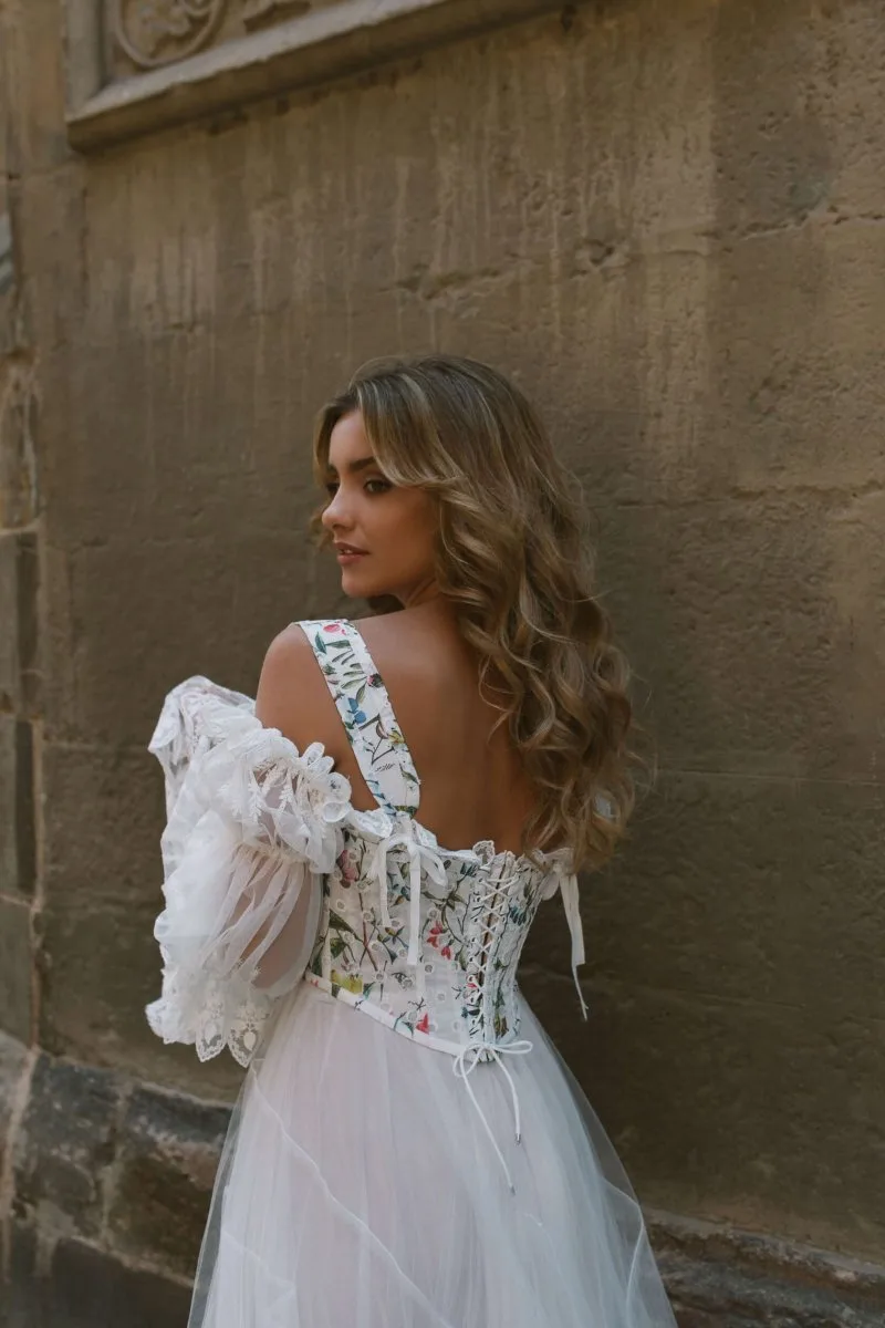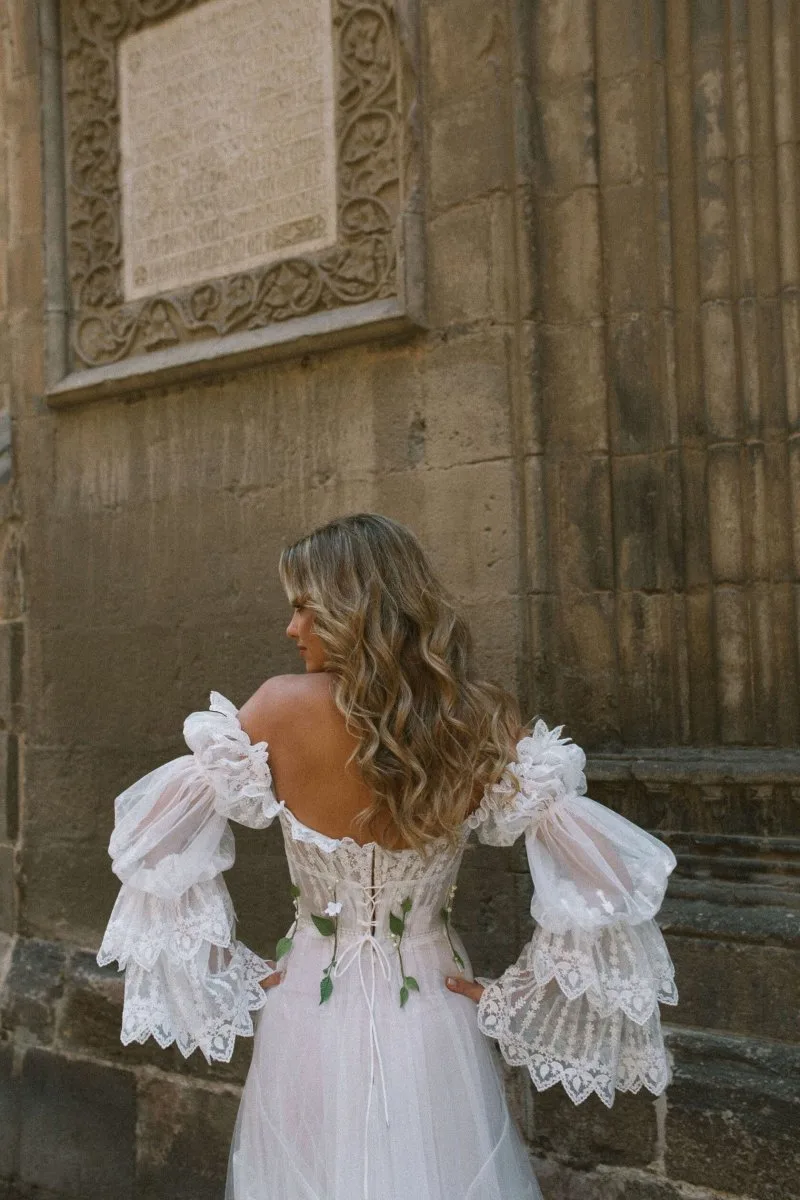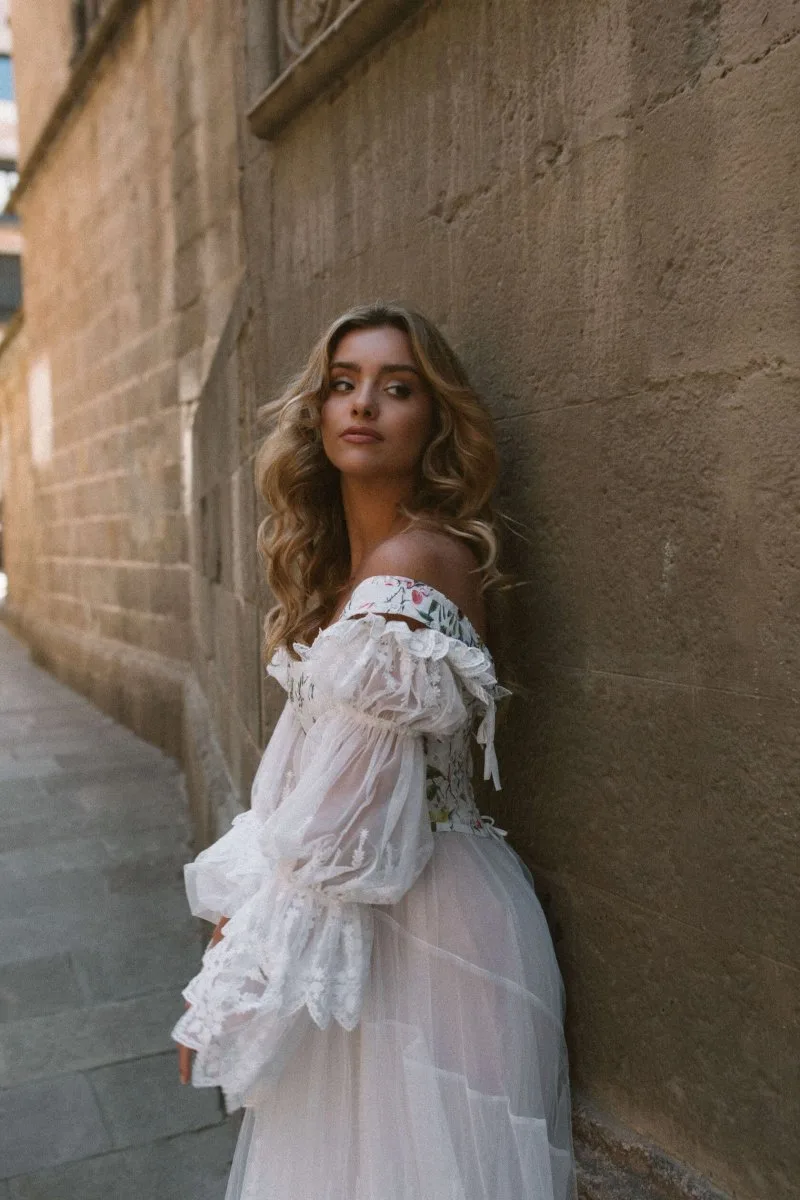 Свадебное платье LAMELA А-силуэта. Лиф дополнен: формованные чашки, корсетная посадка. Из кружева. Особенности: шлейф. Доступные оттенки: молочный. Ищете идеальное свадебное платье в Гродно? LAMELA из коллекции Dolce Vita (Rara Avis) ждёт вас в салоне MonPari. Покупка и прокат.