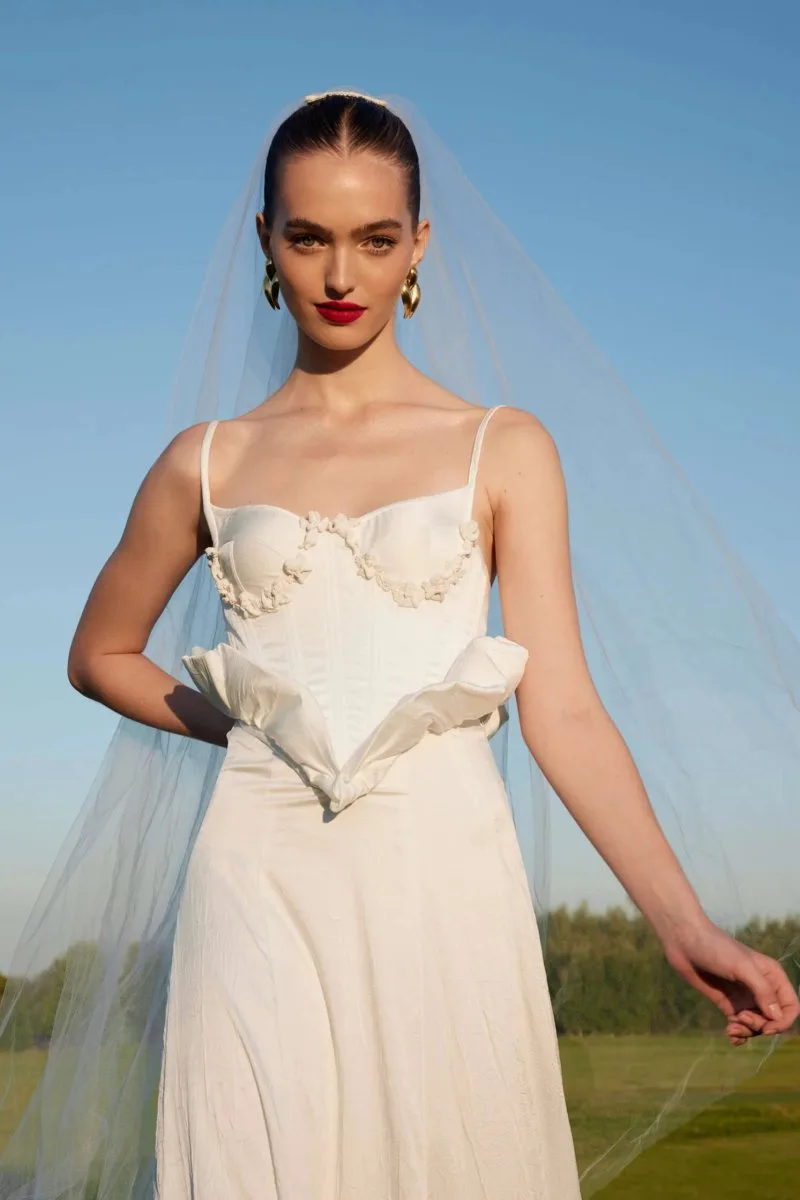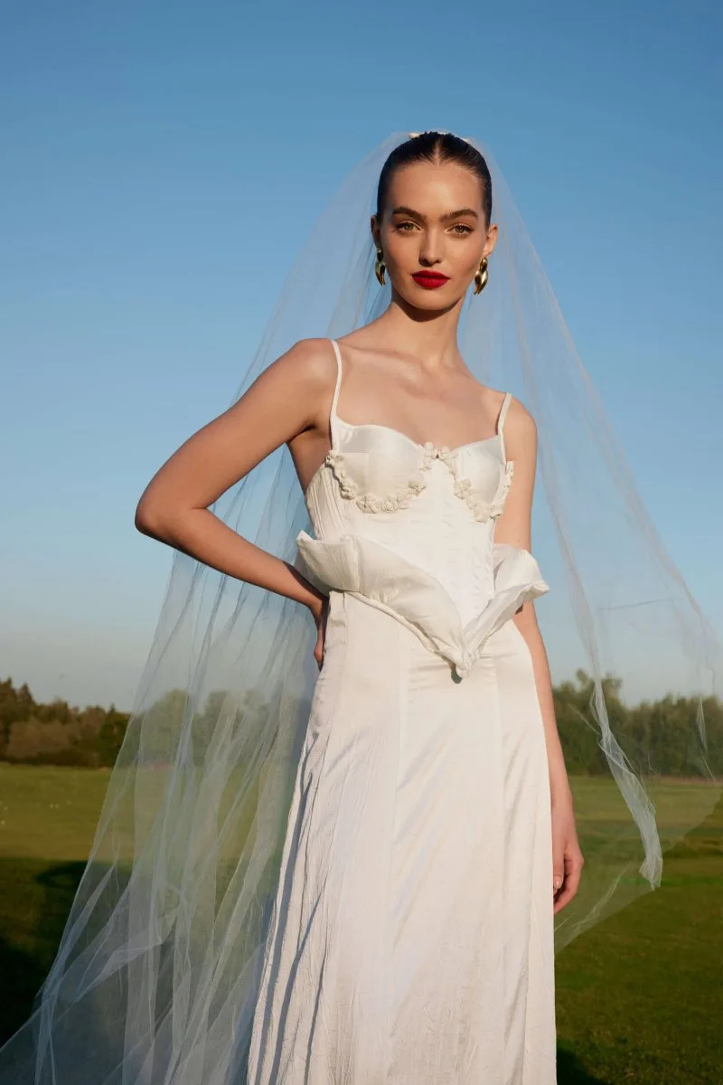 Свадебное платье LIBECCIO прямого кроя. Лиф дополнен: корсетная посадка. Из атласа. Особенности: шлейф. Доступные оттенки: молочный. Ищете идеальное свадебное платье в Гродно? LIBECCIO из коллекции Rose Des Vents (Rara Couture) ждёт вас в салоне MonPari. Покупка и прокат.