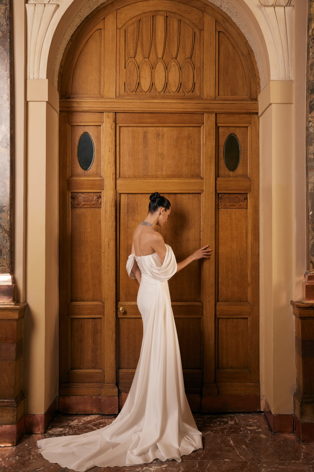 Свадебное платье LYIJINA силуэта «русалка». Лиф дополнен: корсетная посадка, драпировка. Объёмная юбка из атласа и тафта. Особенности: шлейф. Доступные оттенки: молочный. Свадебное платье LYIJINA из коллекции Raise Your Wings от Blamme Biamo доступно для покупки, проката и примерки в салоне MonPari в Гродно.