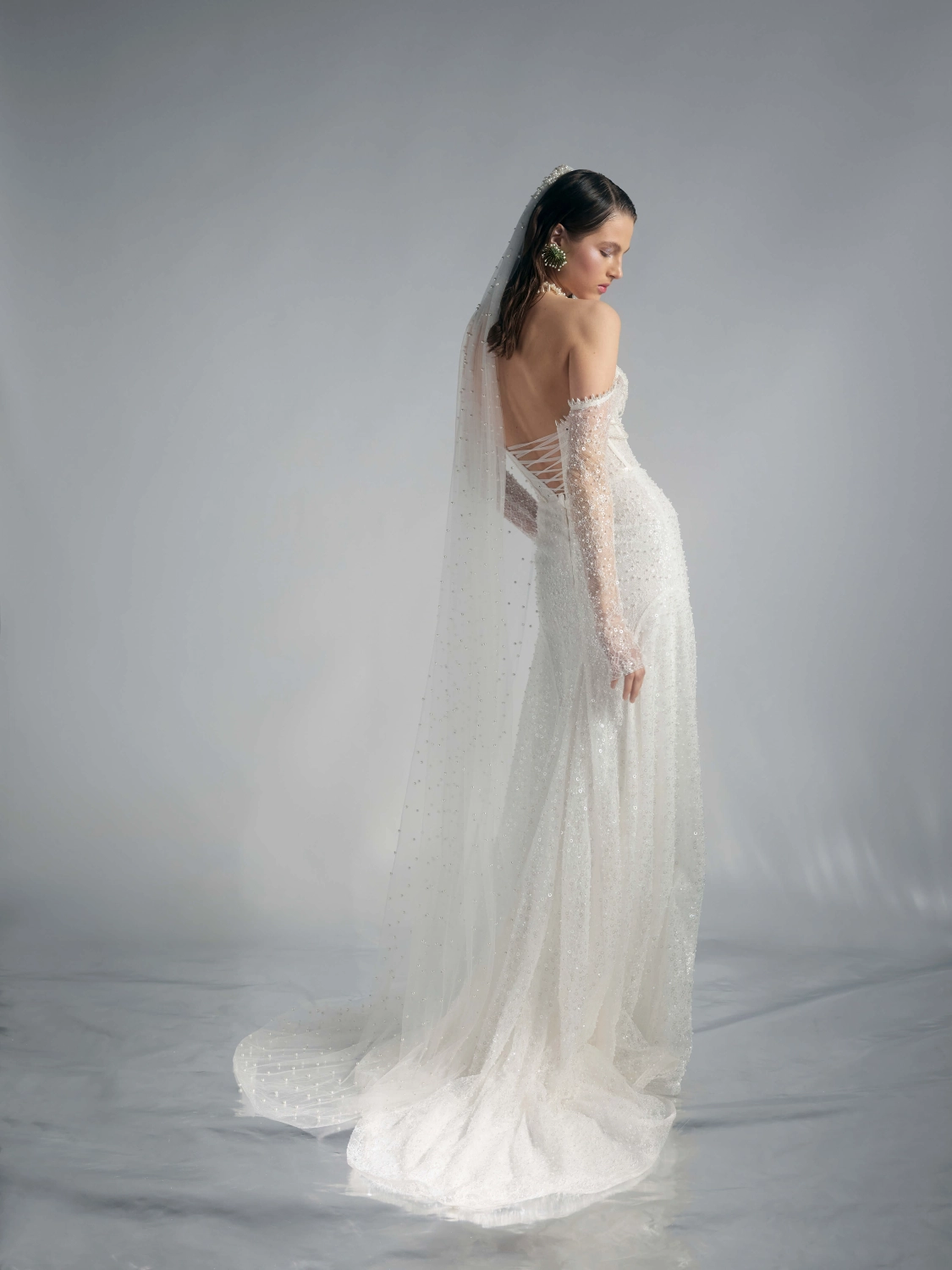 Свадебное платье POISSON прямого кроя. Лиф дополнен: корсетная посадка, отделка бисером и жемчугом. Из кружева. Особенности: шлейф. Модель с длинными рукавами. Доступные оттенки: молочный. Примерьте свадебное платье POISSON (Rara Couture, коллекция L'horoscope) в свадебном салоне MonPari в Гродно. Доступна покупка и прокат.