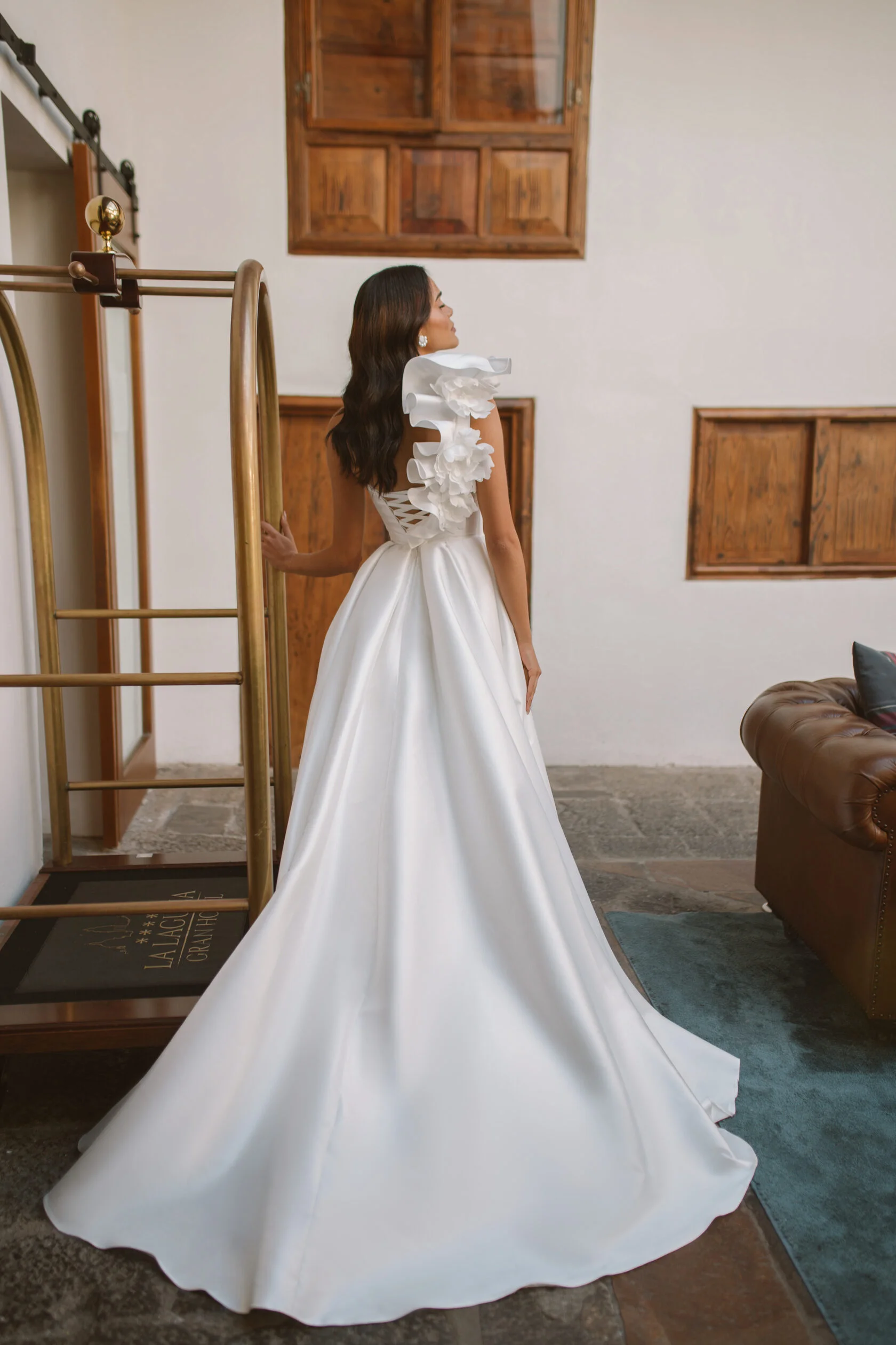Свадебное платье VADA силуэта «принцесса». Многослойная юбка из атласа. Особенности: шлейф. Доступные оттенки: молочный. Свадебный салон MonPari в Гродно приглашает на примерку платья VADA из коллекции White Garden (Blamme Biamo). Покупка и прокат.