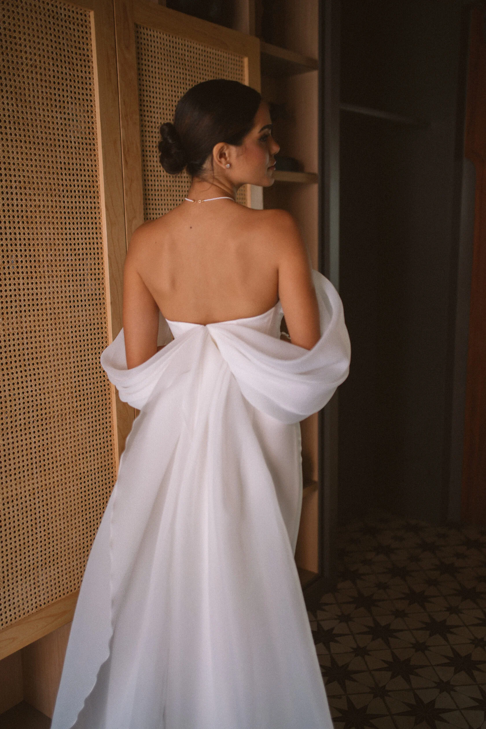 Свадебное платье VETTA силуэта «русалка». Лиф дополнен: корсетная посадка, драпировка. Из атласа. Особенности: шлейф. Доступные оттенки: молочный. VETTA — свадебное платье от Blamme Biamo, коллекция White Garden. Купить, взять напрокат или записаться на примерку — салон MonPari, Гродно.