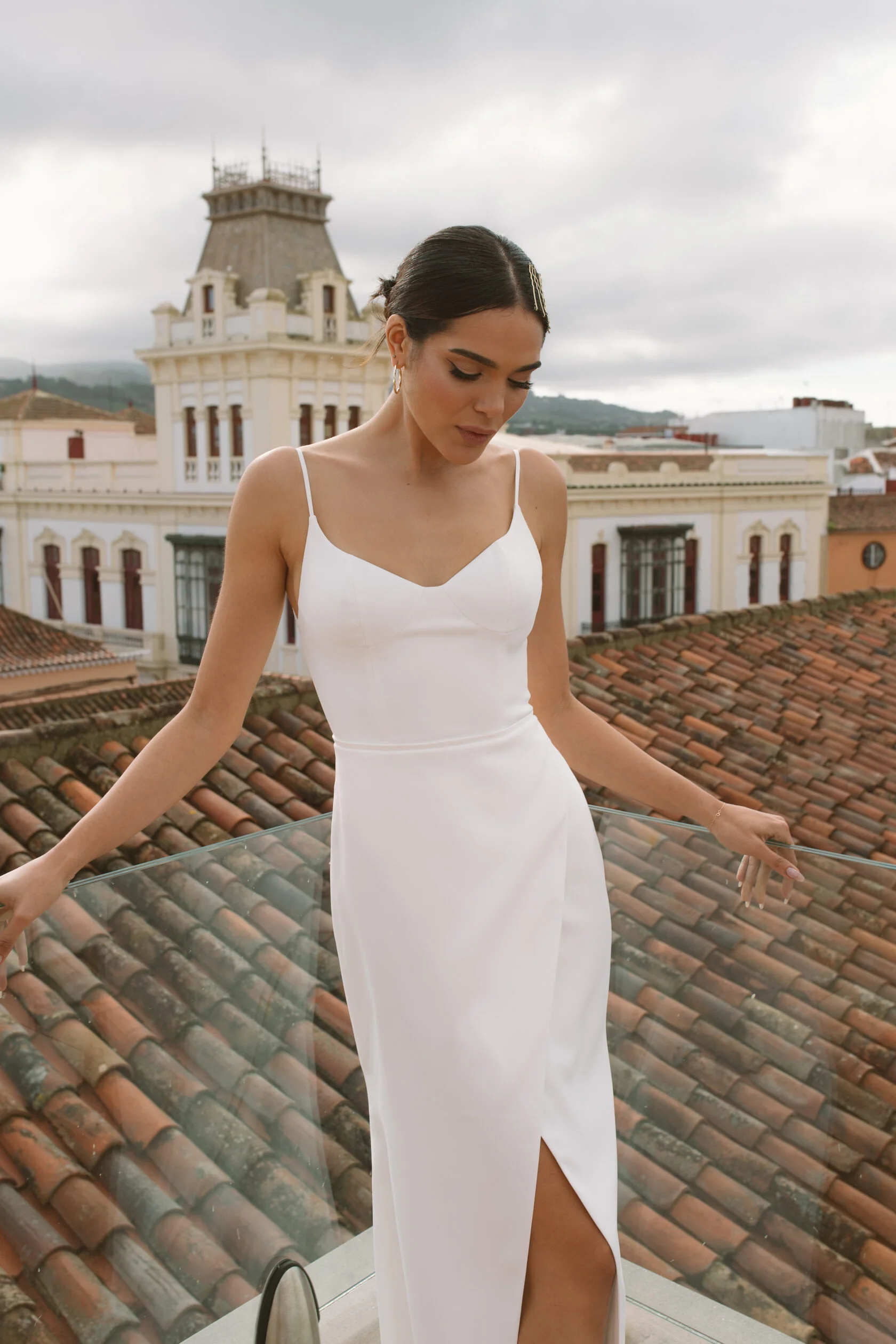 Свадебное платье VIDANA прямого кроя с V-образным вырезом. Лиф дополнен: цветочный декор. Из атласа. Образ дополняют: декоративный бант, кейп. Доступные оттенки: молочный. Свадебный салон MonPari в Гродно приглашает на примерку платья VIDANA из коллекции White Garden (Blamme Biamo). Покупка и прокат.