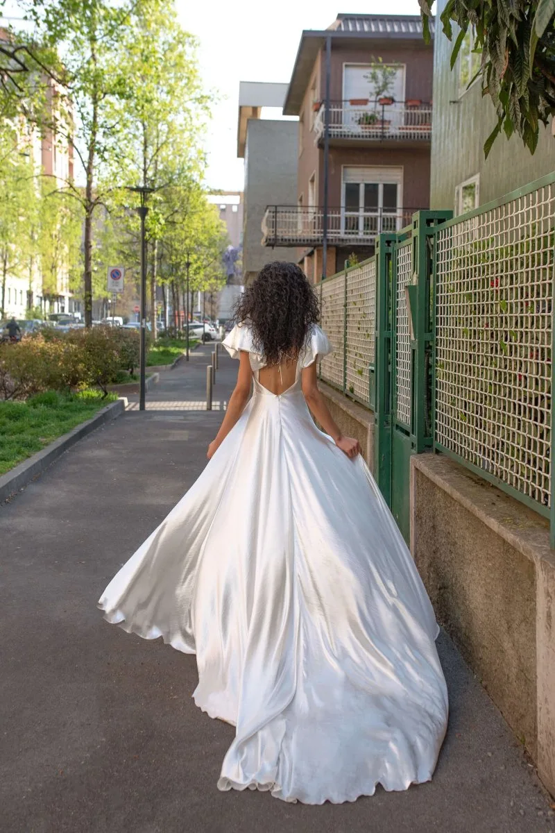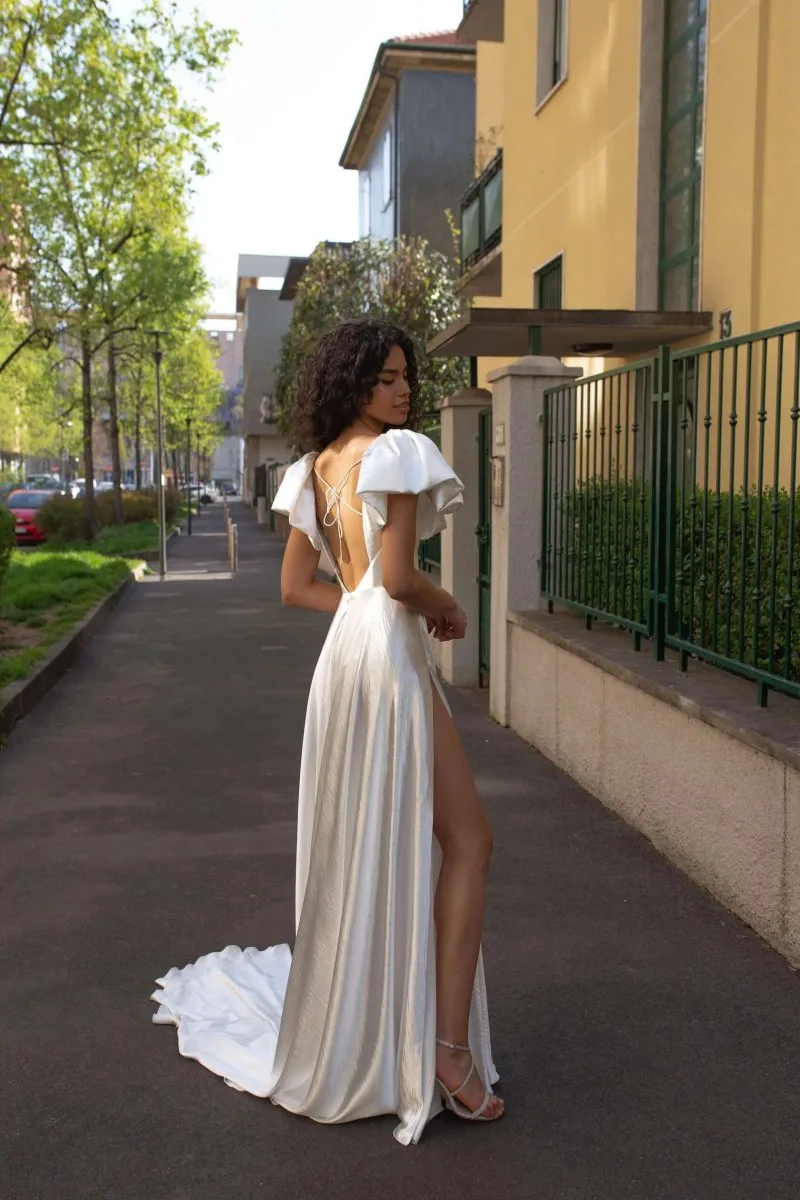 Свадебное платье VIVIA 2 А-силуэта. Лиф дополнен: формованные чашки, корсетная посадка. Из атласа. Особенности: шлейф, разрез. Доступные оттенки: молочный. Свадебное платье VIVIA 2 из коллекции Dolce Vita от Rara Avis доступно для покупки, проката и примерки в салоне MonPari в Гродно.